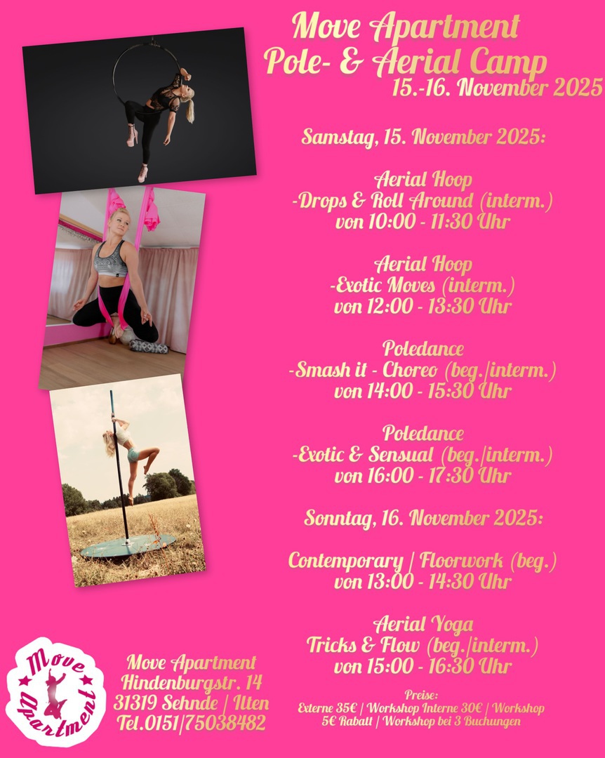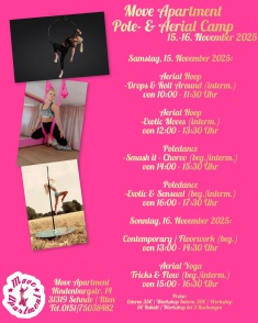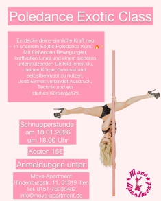 WICHTIG: Bitte vor dem Kurs nicht eincremen, sonst habt Ihr keinen Halt an der Stange.